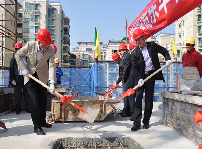 集團(tuán)黨委書記、董事長王維星、黨委副書記、總經(jīng)理王立新為公寓添彩封頂