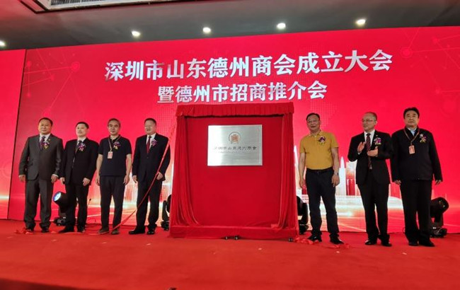 座談會后,王立新同志與彭小毛部長一行參加了深圳市山東德州商會成立大會暨德州市招商推介會,共同為深圳市山東德州商會揭牌。