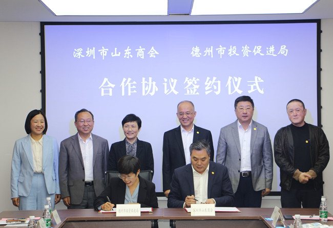 會上,深圳市山東商會與德州市投資促進局簽訂合作協(xié)議,張桂愛同志、王立新同志為“德州市駐粵港澳大灣區(qū)雙招雙引聯絡處”揭牌。