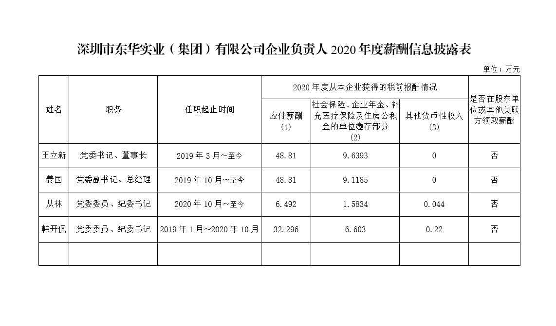 深圳市東華實(shí)業(yè)(集團(tuán))有限公司企業(yè)負(fù)責(zé)人2020年度薪酬信息披露表