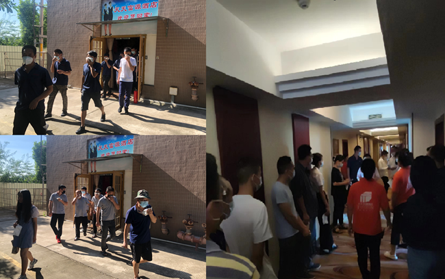 本次活動由應急逃生和滅火器實操兩個環(huán)節(jié)構成。演練首先模擬天天富源酒店5樓一間客房著火,應急組接到報警電話后緊急集合,啟動應急預案并開展救援工作。園區(qū)各單位安全負責人迅速到崗,指導本單位員工疏散。大家彎著腰捂住口鼻,按照預定路線撤離到空曠的安全地帶。各單位安全負責人隨即清點人數(shù),并上報撤離情況。整個過程行動迅速,配合默契。