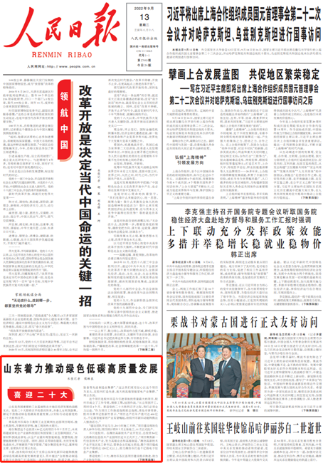 《人民日報》(2022年9月13日 1、4版)