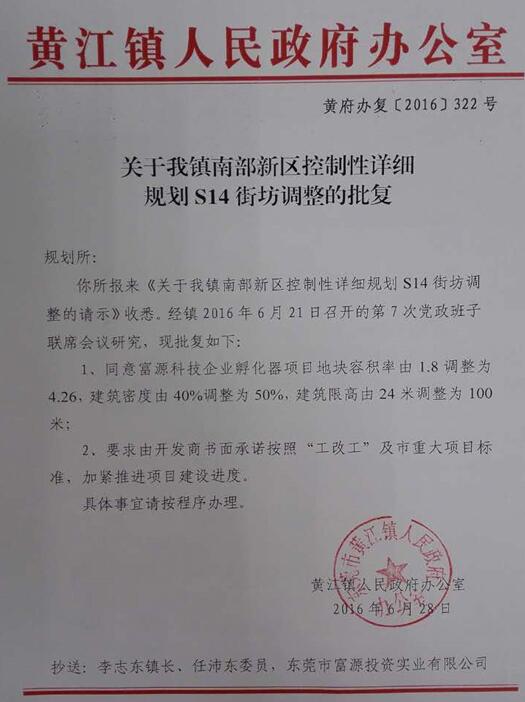 2016年6月28日,我公司上報的東莞市黃江鎮(zhèn)南部新區(qū)控制性詳細規(guī)劃S14街坊調整(富源科技企業(yè)孵化器項目)正式獲得黃江鎮(zhèn)政府批準。
