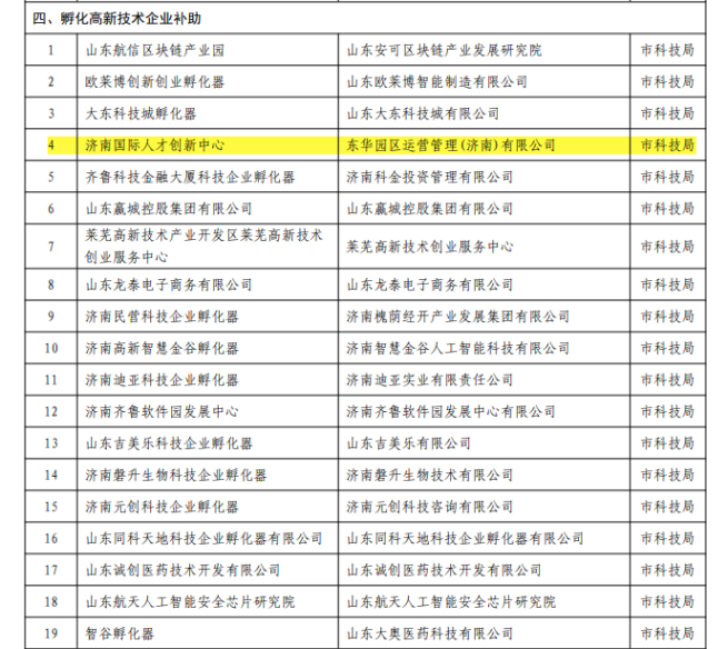 濟(jì)南國際人才創(chuàng)新中心獲批孵化高新技術(shù)企業(yè)補(bǔ)助