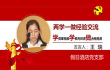 12月2日,集團在東華假日酒店春華廳召開“兩學(xué)一做”學(xué)習(xí)教育經(jīng)驗交流大會。假日酒店黨支部王 瑞同志在交流發(fā)言中表示:“學(xué)黨章黨規(guī)黨紀沒有時間段、永不過時,是每名黨員自我改造、自我約束、自我教育、自我提高的過程,是終身的必修課?!?/div>