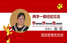 12月2日下午,集團在東華假日酒店春華廳召開了“兩學(xué)一做”學(xué)習(xí)教育經(jīng)驗交流大會。酒店管理黨支部趙 茹同志在交流發(fā)言中表示:“我們年輕一代應(yīng)經(jīng)常重溫黨的歷史與革命黨人的信仰與追求,心懷感恩,為實現(xiàn)中國夢而不懈努力”。