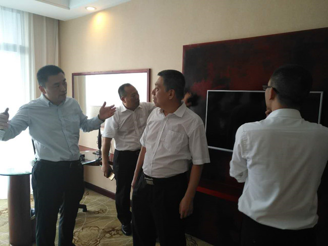 當日下午,檢查組就東華假日酒店客房消防設施、承租單位魯粵軒餐廳廚房排油通道,儲物房消防煙感探測器、消防噴淋頭等進行排查,并及時下達整改意見,責成立即整改;在東華園區(qū)內,物業(yè)公司負責人介紹了園區(qū)硬件設施建設情況,檢查組重點檢查園區(qū)監(jiān)控室重點部位監(jiān)控情況,確保監(jiān)控“無死角”;檢查了嘉悅酒店頂層排水管道,對屋面通道的鐵板加固提出意見,避免傷人。