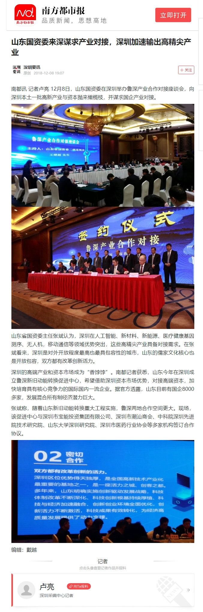 南方都市報(bào):山東國資委來深謀求產(chǎn)業(yè)對接,深圳加速輸出高精尖產(chǎn)業(yè)