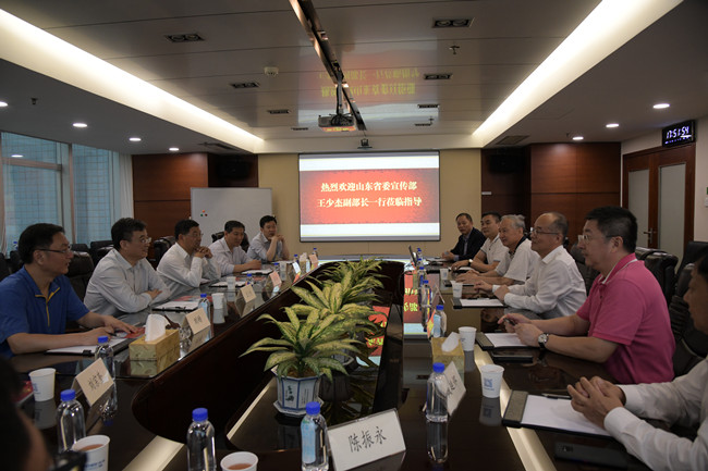 在第十五屆文博會(huì)開幕前夕,山東省省管國(guó)有文化企業(yè)監(jiān)事會(huì)主席王少杰率隊(duì)蒞臨深圳東華集團(tuán)就“魯深文化產(chǎn)業(yè)對(duì)接、促進(jìn)文化產(chǎn)業(yè)新動(dòng)能”等開展調(diào)研。