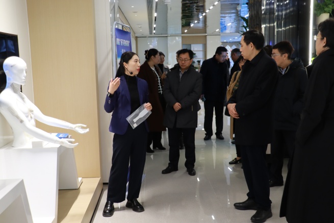 在濟南國際人才創(chuàng)新中心,孫中亮一行聽取了園區(qū)整體規(guī)劃及配套功能的詳細介紹,實地調(diào)研了園區(qū)內(nèi)科技路演廳、公共服務平臺、企業(yè)辦公區(qū)以及黨員活動中心,詳細了解了園區(qū)運營模式、平臺建設(shè)、政策服務體系、企業(yè)孵化成果、產(chǎn)業(yè)資源聚集等情況。在“歷下好成果”展廳,孫中亮一行參觀了齊魯醫(yī)院張運院士團隊研發(fā)的心磁成像設(shè)備、澳大利亞科學院院士查爾斯麥凱團隊研發(fā)的功能性營養(yǎng)食品、山東亞歷山大智能科技周軍教授團隊研發(fā)的云邊協(xié)同智能消殺機器人、山東大學生物醫(yī)學傳感工程技術(shù)研究中心研發(fā)的新一代高密度柔性可拉伸電極傳感器設(shè)備以及低空領(lǐng)域多旋翼無人機軍用及民用裝備等高科技成果,并對濟南國際人才創(chuàng)新中心在推動區(qū)域高新技術(shù)產(chǎn)業(yè)發(fā)展和科技成果轉(zhuǎn)化方面取得的成就給予高度認可。