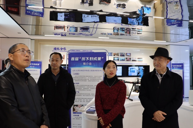 在濟(jì)南國際人才創(chuàng)新中心,張成一行聽取了園區(qū)在企業(yè)培育、成果轉(zhuǎn)化、人才引進(jìn)以及服務(wù)體系搭建等方面的詳細(xì)介紹,實(shí)地調(diào)研了園區(qū)功能區(qū)域和黨群活動(dòng)中心。在“歷下好成果”展廳,詳細(xì)了解了歷下區(qū)在科技榮譽(yù)、研發(fā)平臺(tái)、科技人才、國際合作等方面所取得的成績。張成一行參觀了中國首位諾貝爾生理學(xué)或醫(yī)學(xué)獎(jiǎng)獲得者屠呦呦與山東中醫(yī)藥研究院共同研制的青蒿素產(chǎn)品、外籍院士查爾斯團(tuán)隊(duì)研發(fā)的善維免疫系列產(chǎn)品、山東大學(xué)齊魯醫(yī)院與中國科學(xué)院院士房建成聯(lián)合研發(fā)的零磁醫(yī)學(xué)裝備、俄羅斯工程院外籍院士劉延俊團(tuán)隊(duì)研發(fā)的海上波浪能發(fā)電裝備等高科技產(chǎn)品,并對(duì)濟(jì)南國際人才創(chuàng)新中心在推動(dòng)高校院所、科技企業(yè)創(chuàng)新成果轉(zhuǎn)化方面所做出的努力給予高度認(rèn)可。