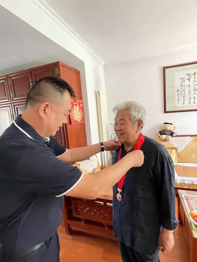 孫寧同志為程敦詩(shī)同志頒發(fā)“光榮在黨50年”紀(jì)念章